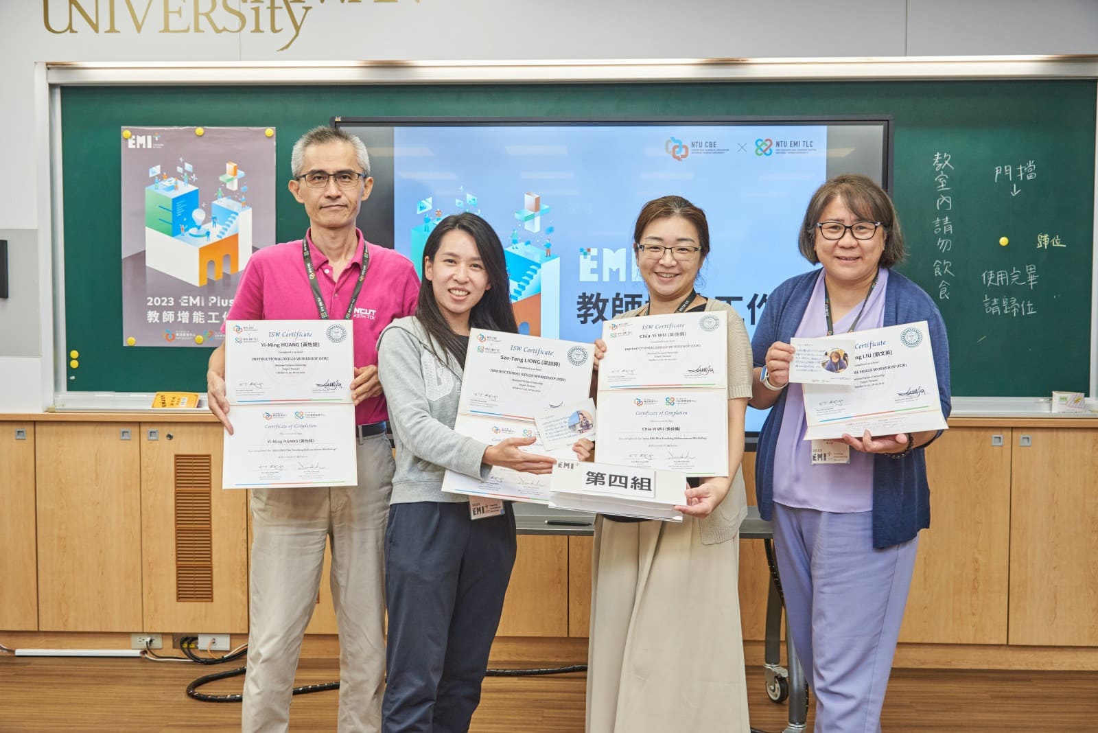 並於工作坊前後更導入「前後測」作為評量,清楚呈現增能成效。通過評量者,將獲頒臺大EMI教學資源中心頒發的「結訓證明」與ISW國際認證的結業證書。
