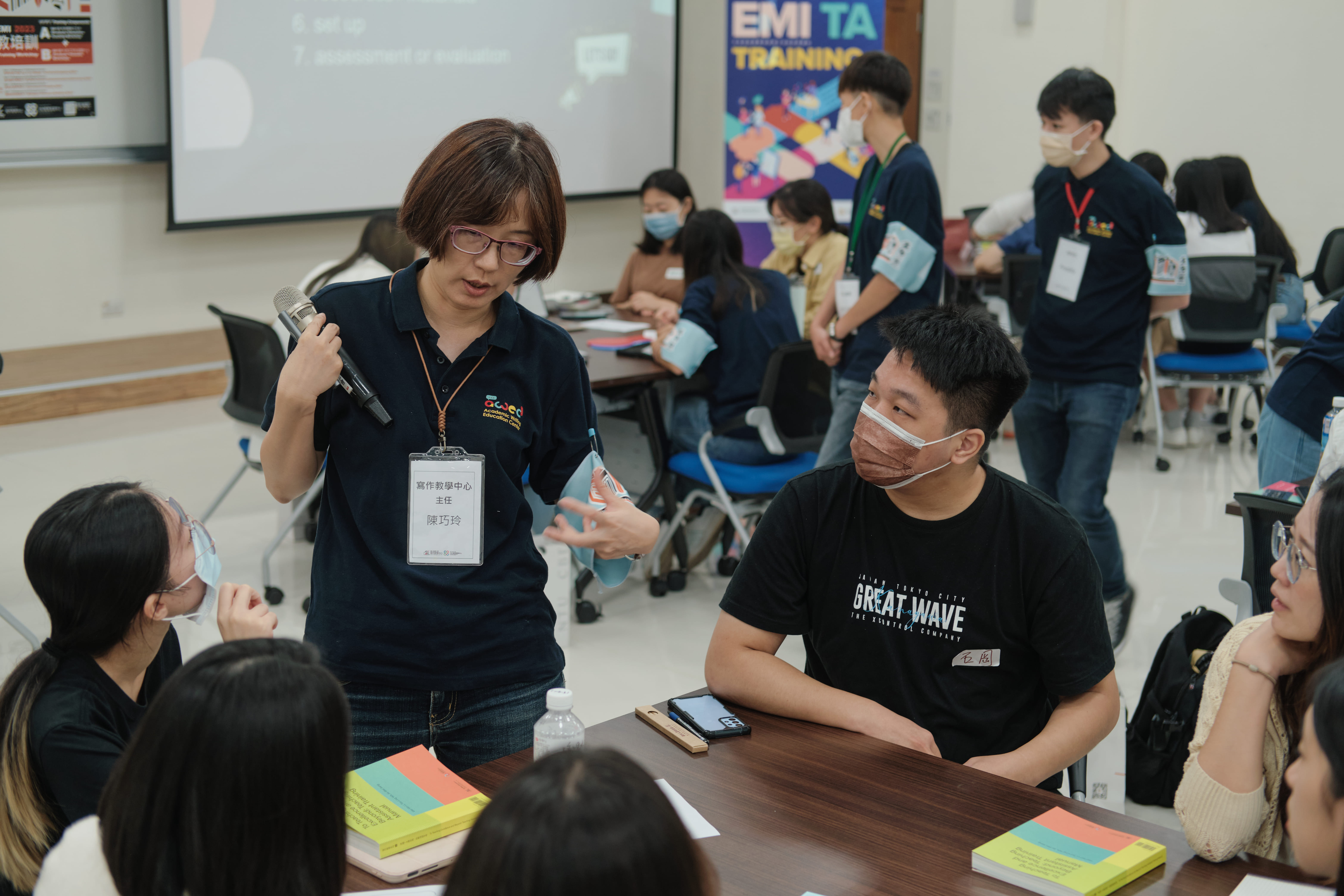 EMI教學助理(以下簡稱EMI-TA)作為EMI課室中學生與教師、學生與知識的橋樑,扮演關鍵的角色,TA 若擁有足夠的教學技巧,能夠提供EMI教師及學生更有效的協助。有屆於此,國立臺灣大學EMI教學資源中心與寫作教學中心合作舉辦跨校EMI-TA培訓,邀請全國大專校院TA及學生參與,不只是他們本身能夠學習到教學技能,且能作為各大專校院發展EMI-TA培訓機制之參考。另外,來參與實體活動的TA皆能獲得由寫作教學中心出版著作《卓越 TA 帶你飛──助教培訓手冊》,透過此培訓手冊的輔助,不僅提供參加者工作坊結束後的延伸學習,更可以做為各校更完善的培訓流程參考。