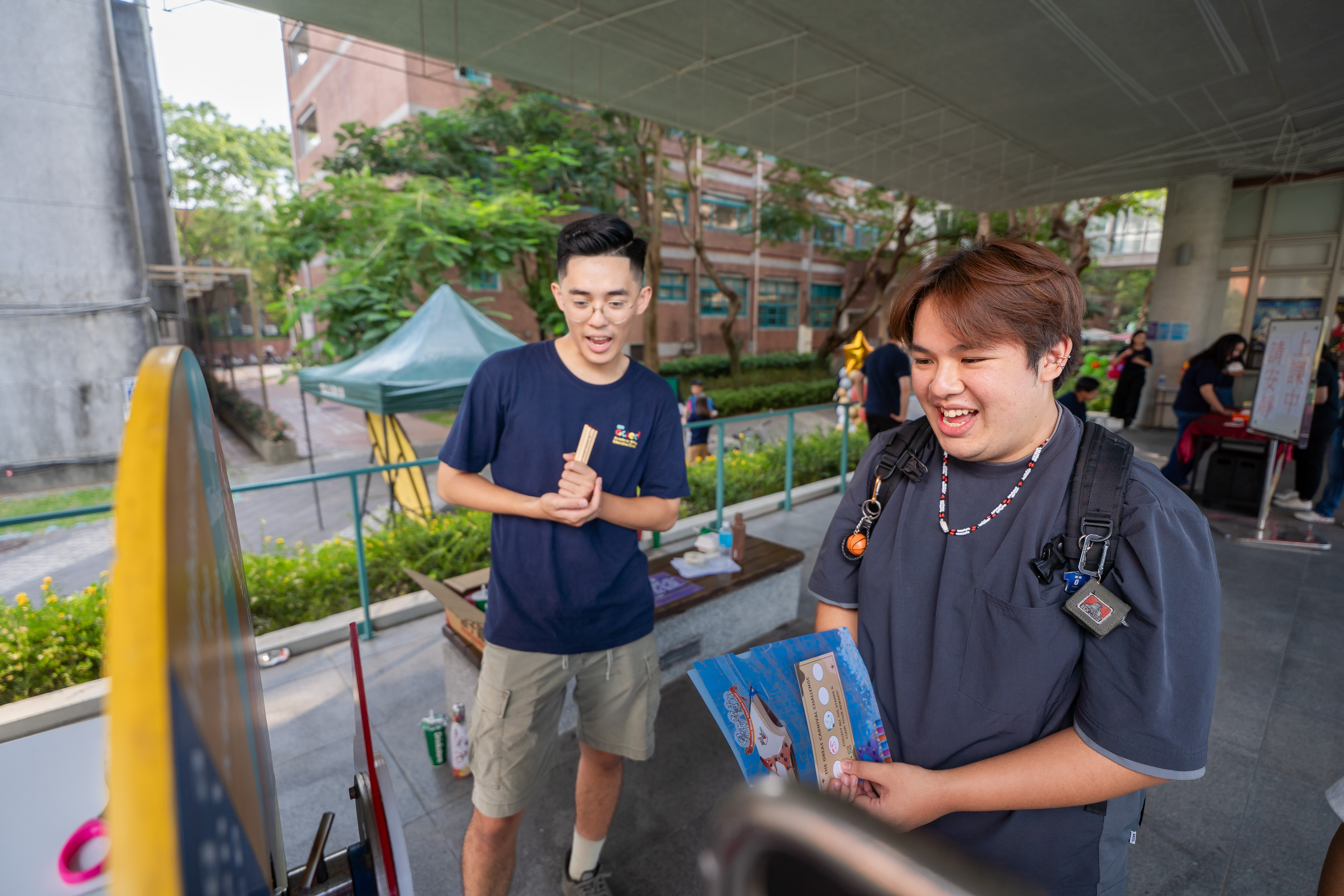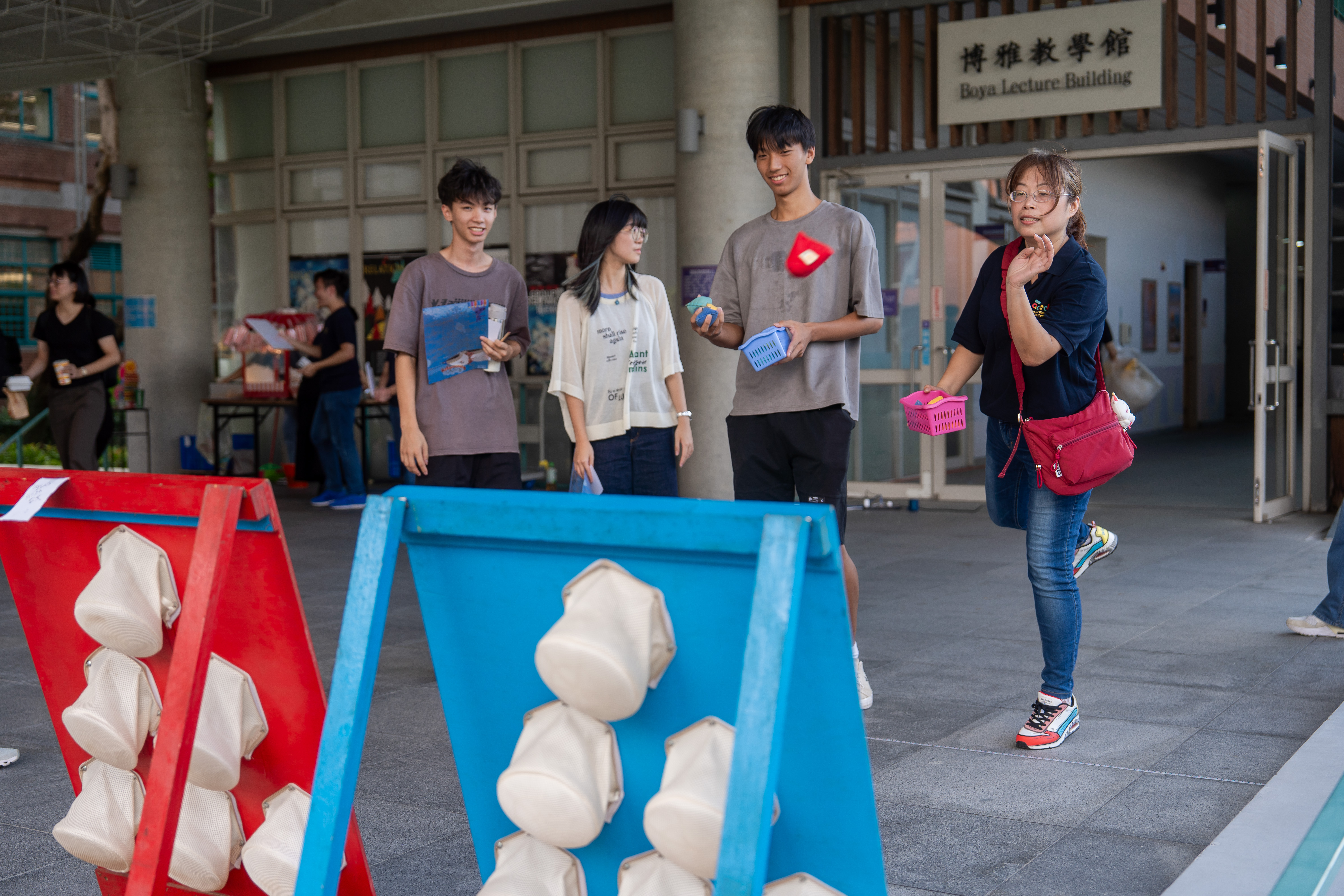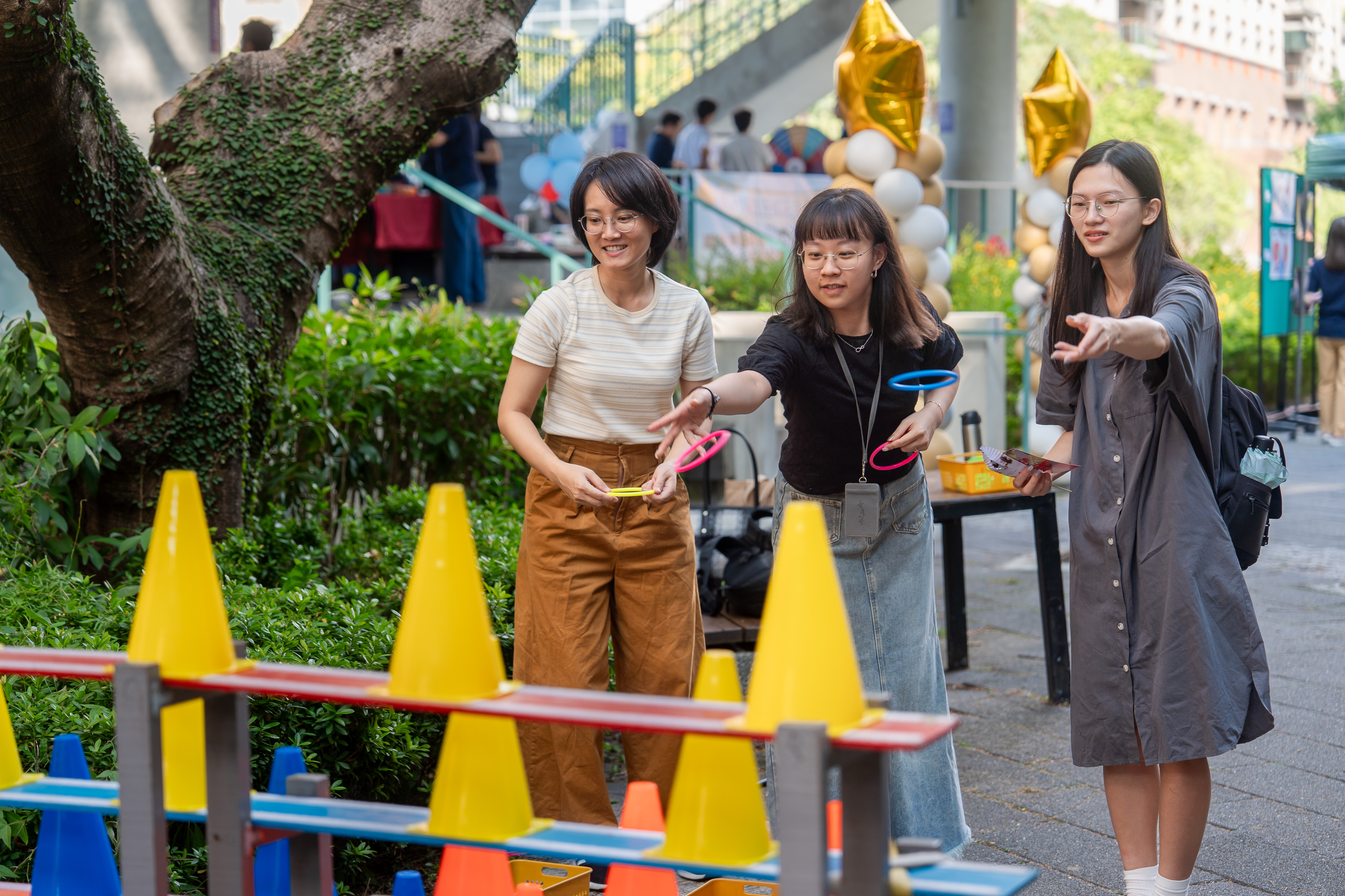 在一個個趣味遊戲攤位中闖關,