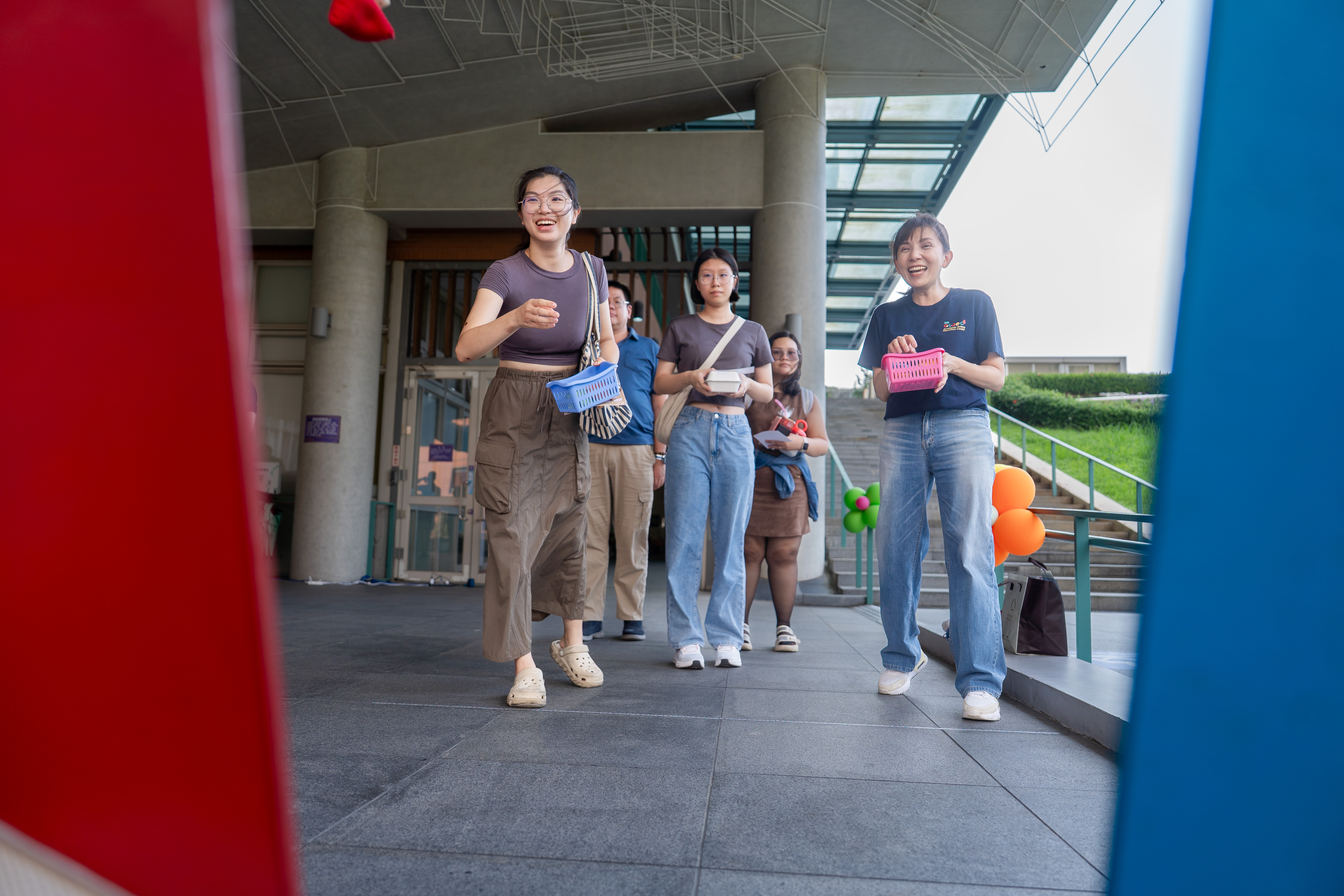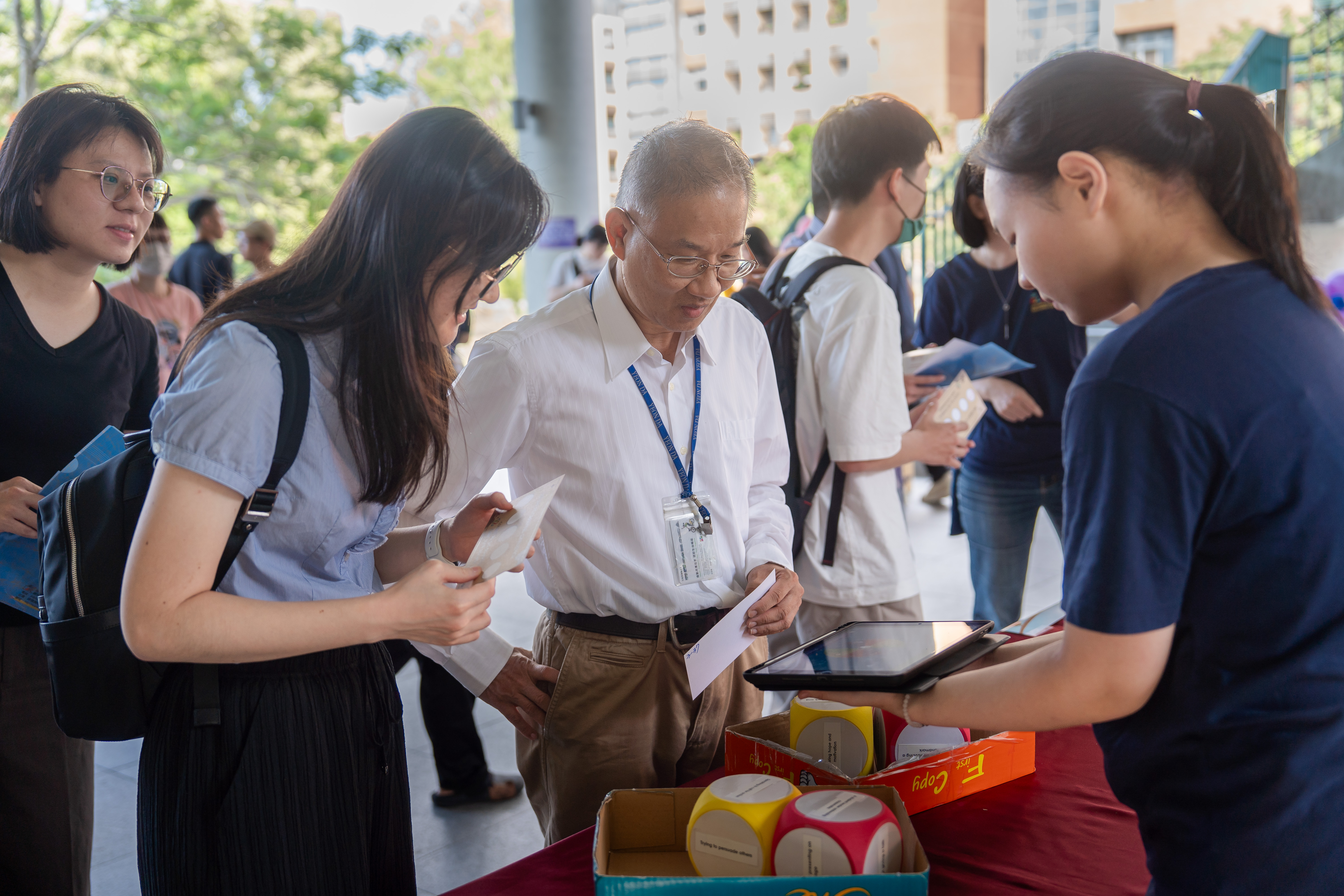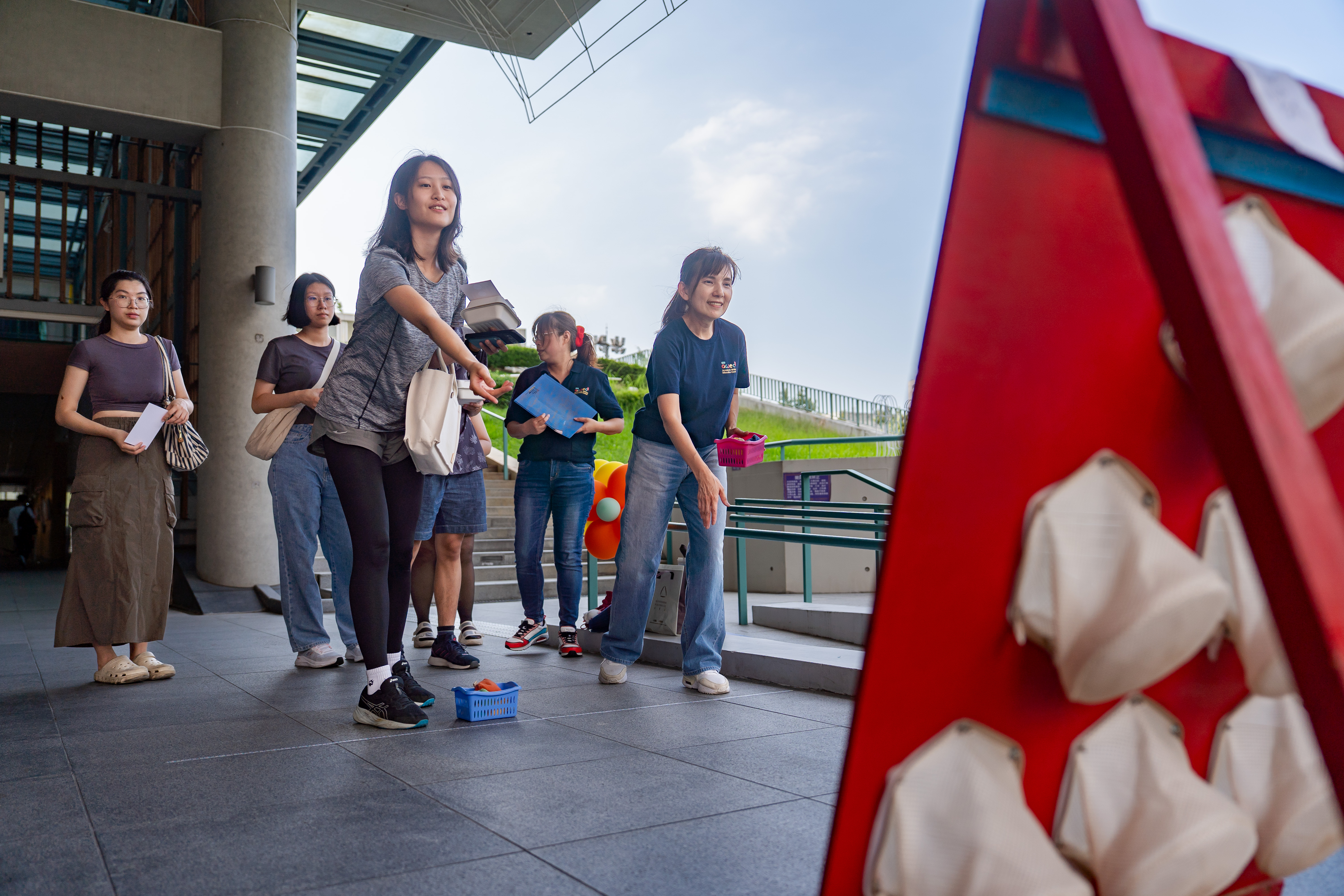 在一個個趣味遊戲攤位中闖關,