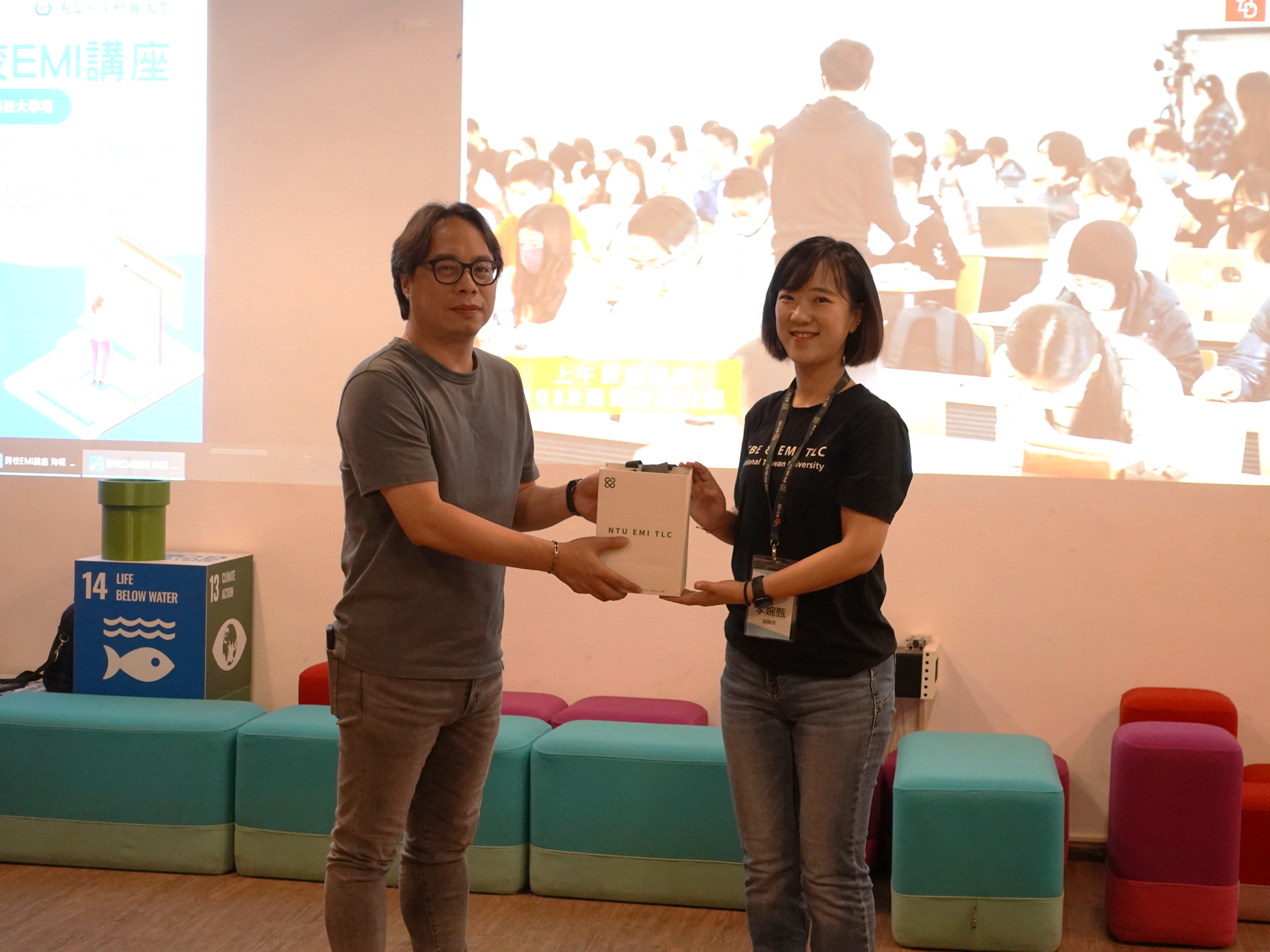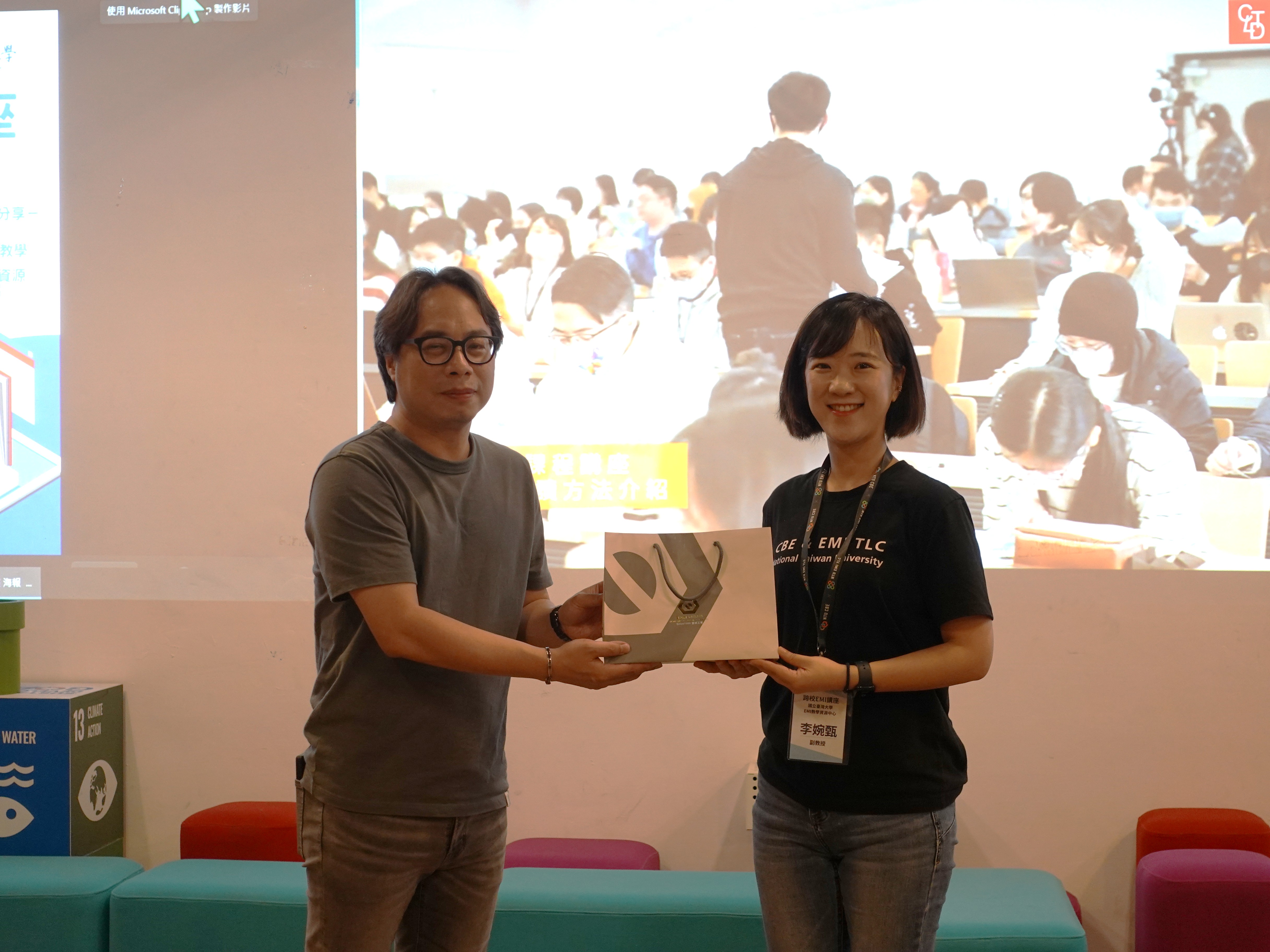 講座一開始先由虎尾科大的賴主任開場,再由臺大EMI教學資源中心的李婉甄組長致詞。